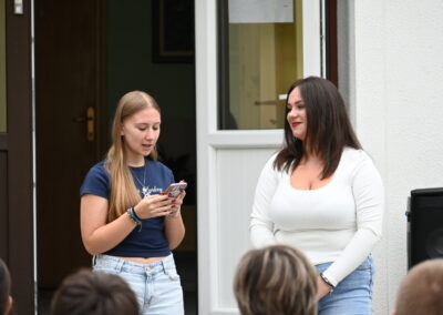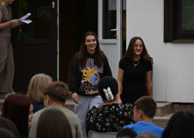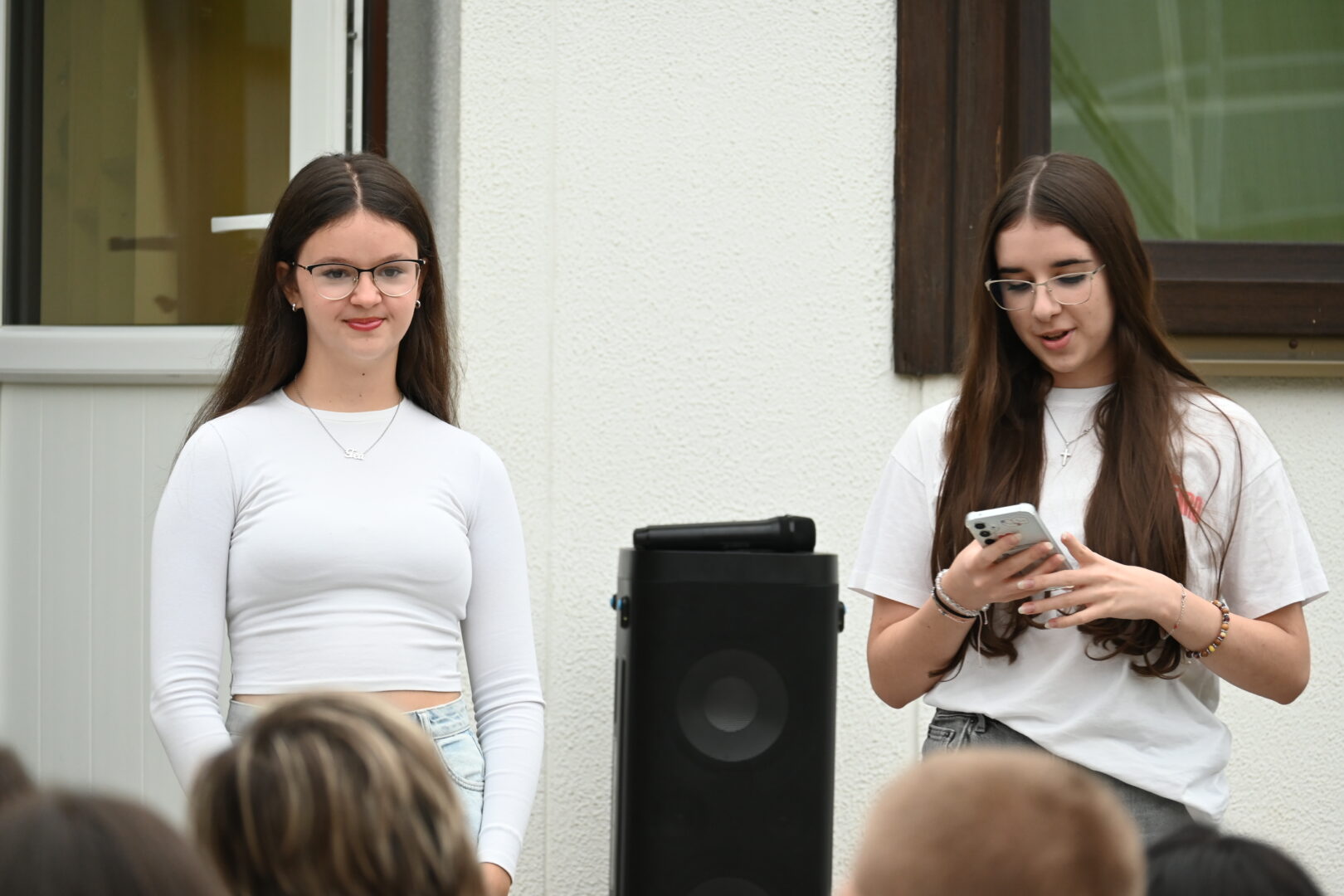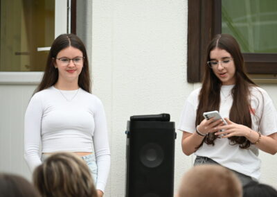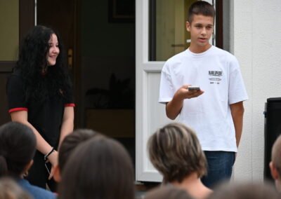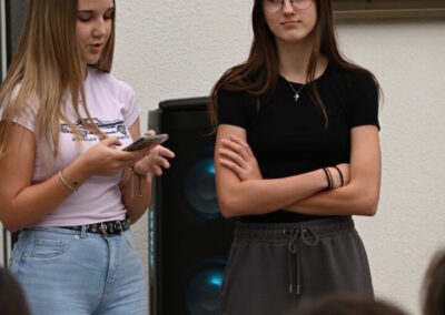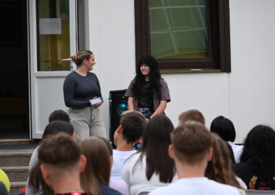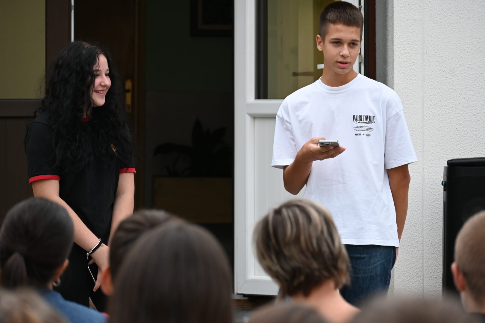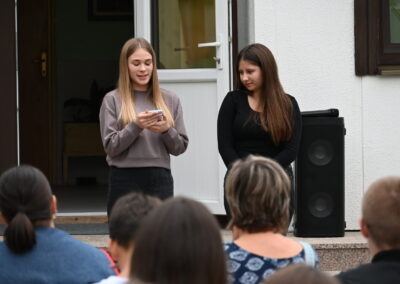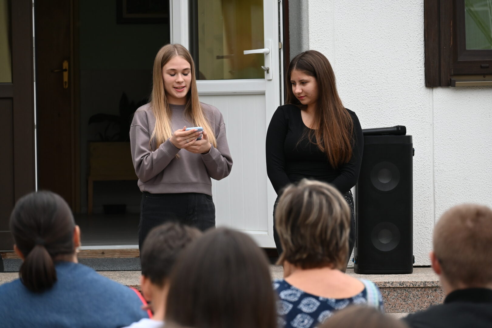 Okupili smo se u domskom dvorištu i započeli program s par recitacija koje su izvele članice naše Dramsko-recitatorske skupine.