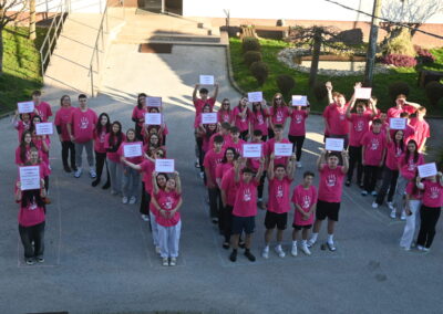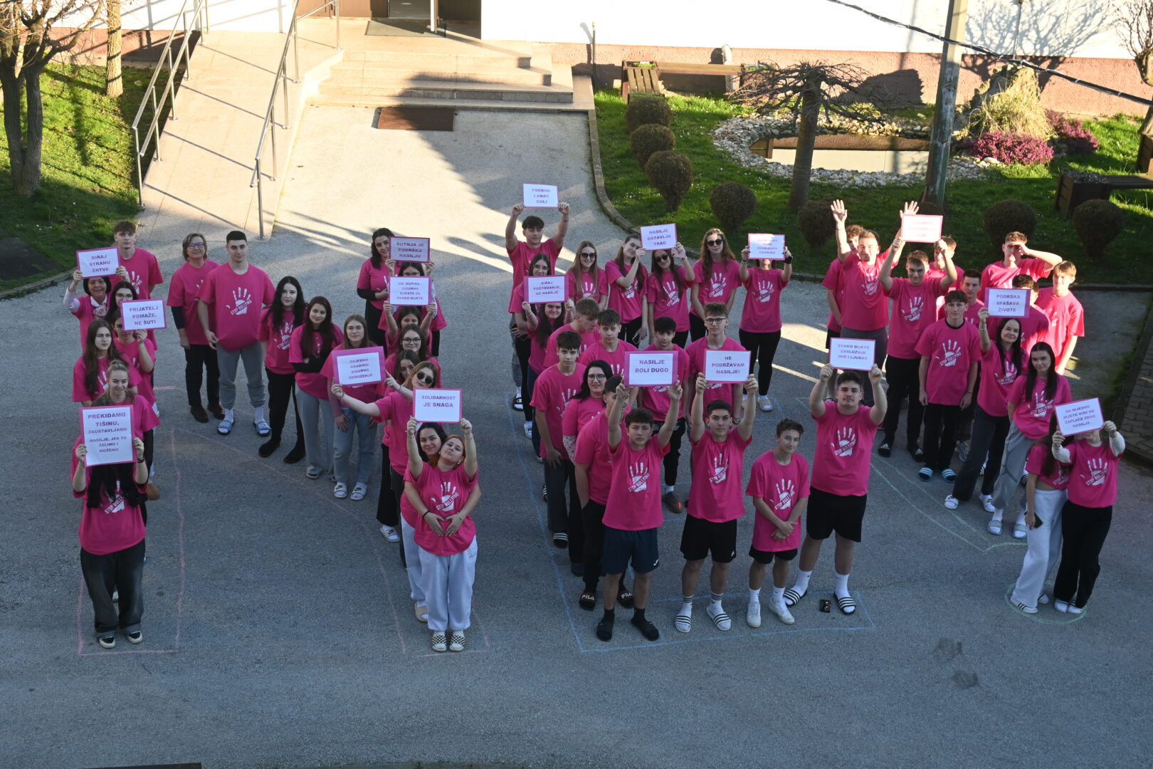 —-MILENIJSKA FOTOGRAFIJA -tijelima ispisana poruka učenika i djelatnika Učeničkog doma Kutina – NE! obučenih u ružičaste majice
