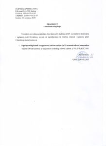 OBAVIJEST o odgodi i novom terminu razgovora 10.12.2025.